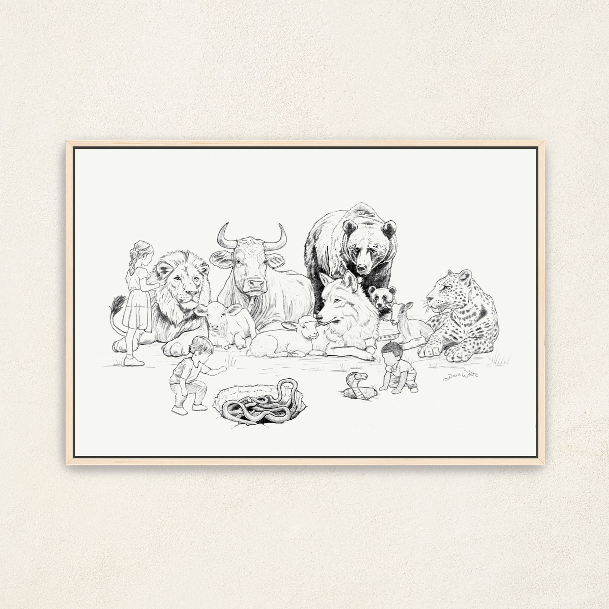 This canvas illustration captures Isaiah's prophesy of a world where the natural order is transformed, inviting you to envision a future of peace and harmony.