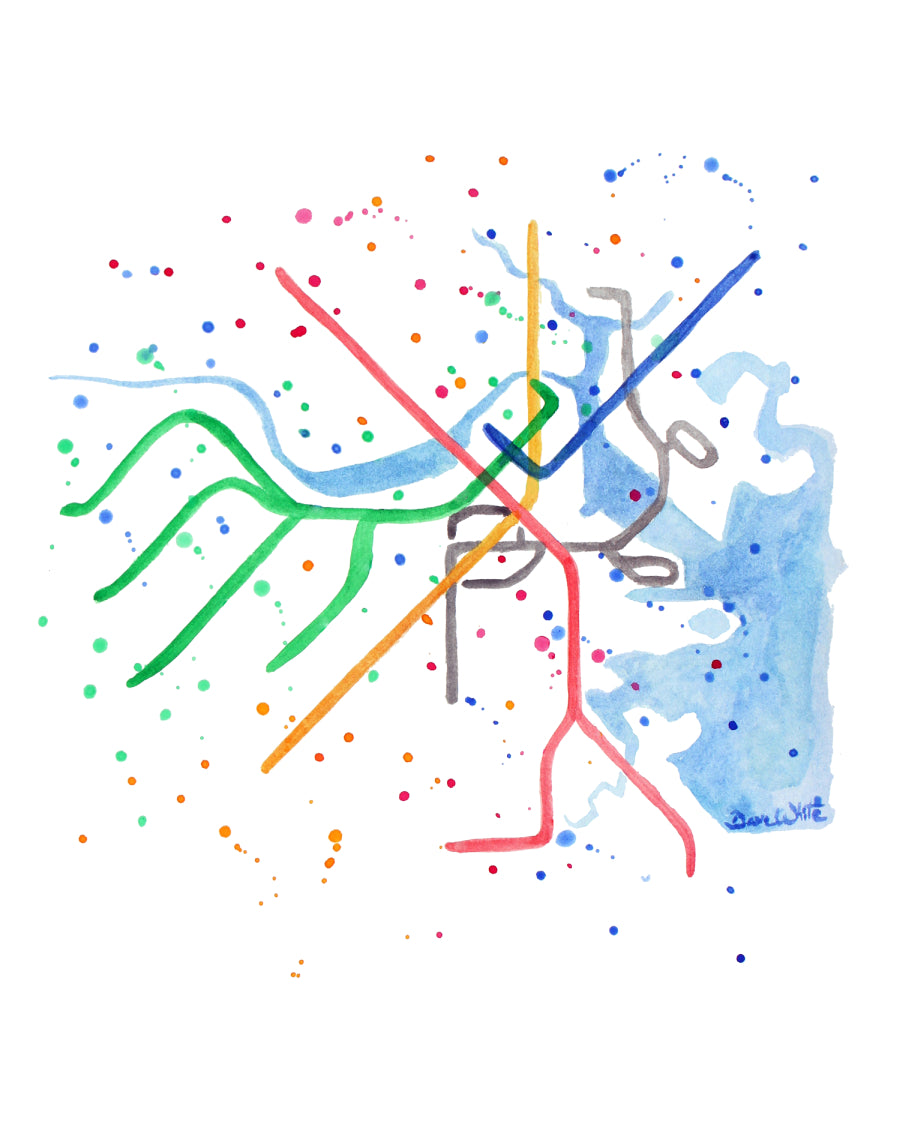 Boston T Rail Map Art Print Watercolor Painting MBTA
