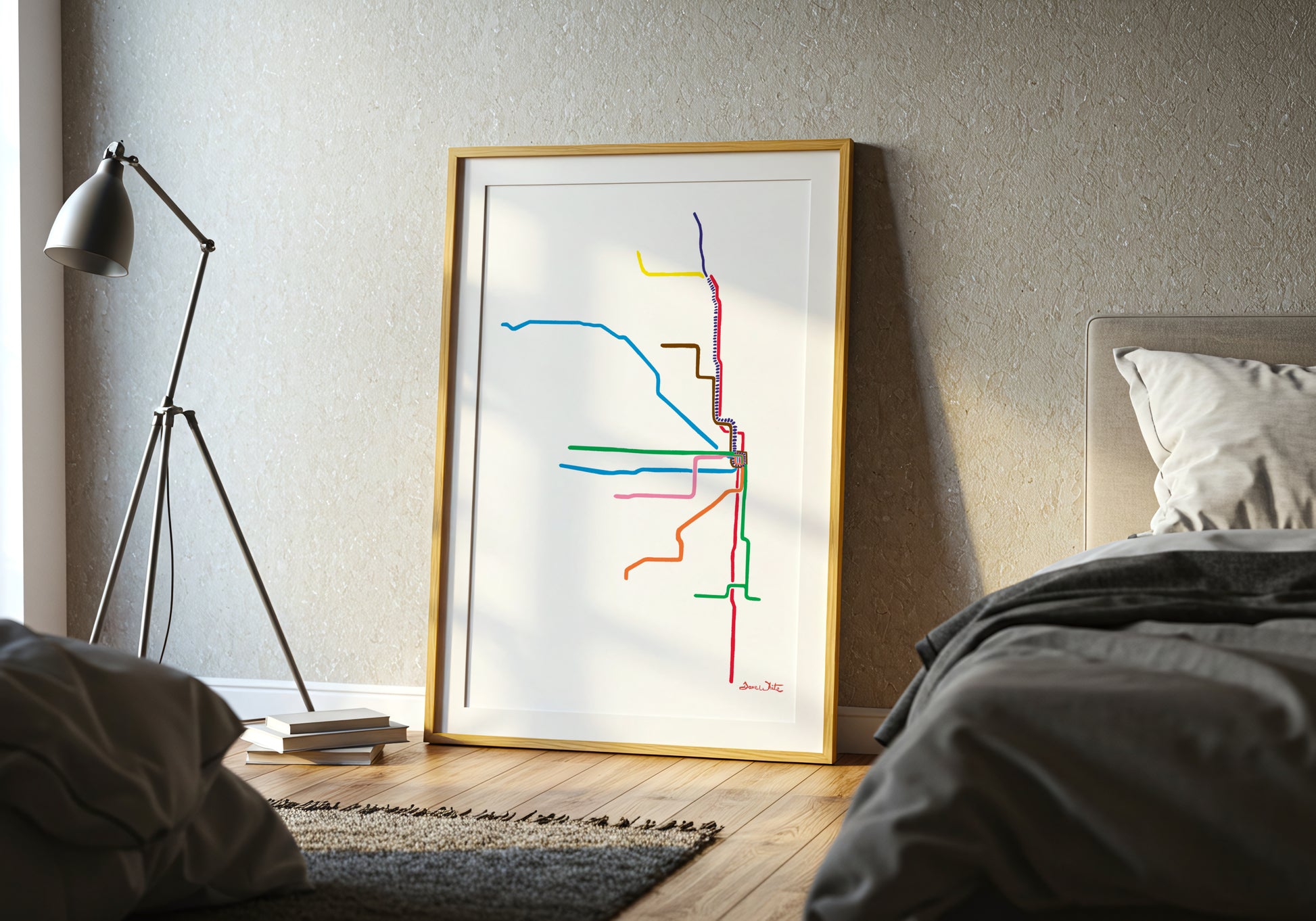 Decorate your home with this bright and colorful watercolor portrayal of the Chicago L Train map! This artwork shows each line as they travel across the Chicagoland area.